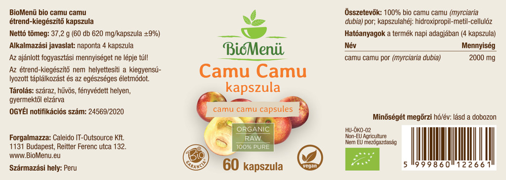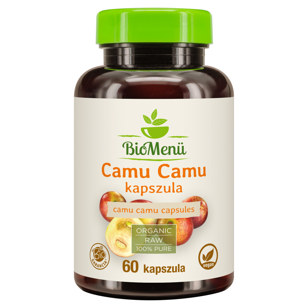 Camu camu, ki izvira iz amazonske regije v Južni Ameriki, je grm, ki divje raste ob poplavnih ravnicah in je izjemno odporen na poplave. Plod je rdečkasto-vijolična jagoda z visoko vsebnostjo vitamina C. Jagode camu camu vsebujejo številne druge antioksidante in esencialne antioksidante. Jagode camu camu se uporabljajo tudi v tradicionalni prehrani za aromatiziranje sladkarij – pijač in marmelad – vendar se zaradi visoke hranilne vrednosti vse pogosteje uporabljajo kot prehransko dopolnilo. Izbrane zaradi svoje najboljše kakovosti, surove organske jagode camu camu očistijo v čisti vodi, posušijo in nato fino zmeljejo.