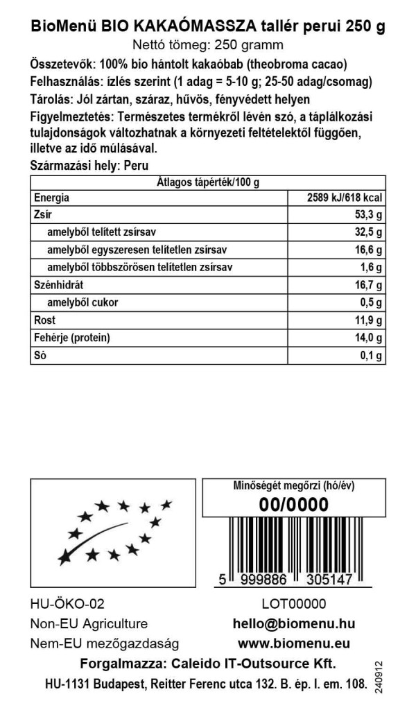 Kakavovec Theobroma, ki izvira iz tropskega podnebja Južne Amerike, je sveto drevo Majev in Aztekov. Kakavova zrna so okusna superhrana, saj vsebujejo široko paleto antioksidantov in drugih hranil. Kakavova zrna, ki jih pridelujejo ekološki pridelovalci v Peruju, vsebujejo več antioksidantov kot rdeče vino in trikrat več kot zeleni čaj. Kakavova zrna so bogat vir mineralov. Surova zrna so ročno obrana, izbrana so najbolj kakovostna in fermentirana, da se zmanjša njihova začetna grenkoba. Za izdelavo kakavove paste jih zmeljejo in pasta se stopi, da postane tekoča. Tekočina se ohladi in oblikuje v ploščice. Kakav je bogat z antioksidanti, tri vrste maščob, ki predstavljajo 50 % njegove teže, niso škodljive za naše telo in nimajo učinka zvišanja holesterola (oleinska kislina, stearinska kislina in palmitinska kislina), vsebuje pa tudi več aminokislin (triptofan in arginin). Kakavova masa ni le najpomembnejša surovina za izdelavo čokolade, temveč tudi eno najbolj priljubljenih živil na svetu. Perujski krožnik kakavove mase BioMenu je okusna superhrana.