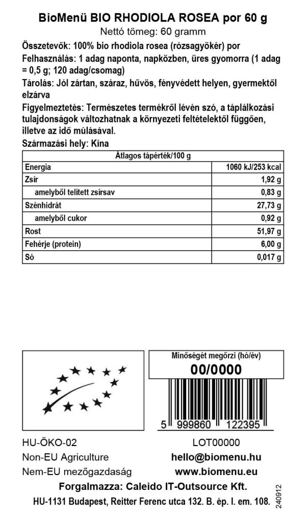 100 % organski prah iz korenine vrtnice (Rhodiola rosea)