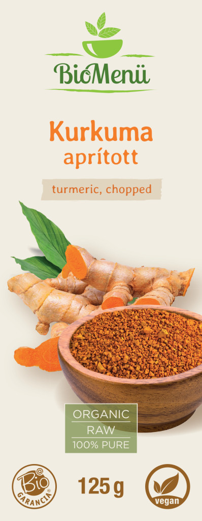 100 % organski koščki kurkume (curcuma longa), z najmanj 2 % vsebnostjo kurkumina, sesekljani, presejani