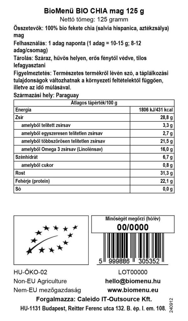 BioMenü organska semena chia 125 g slika izdelka