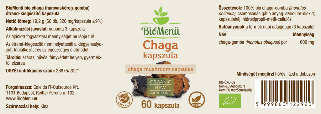 BioMenü organske kapsule gobe chaga 60 kosov slika izdelka