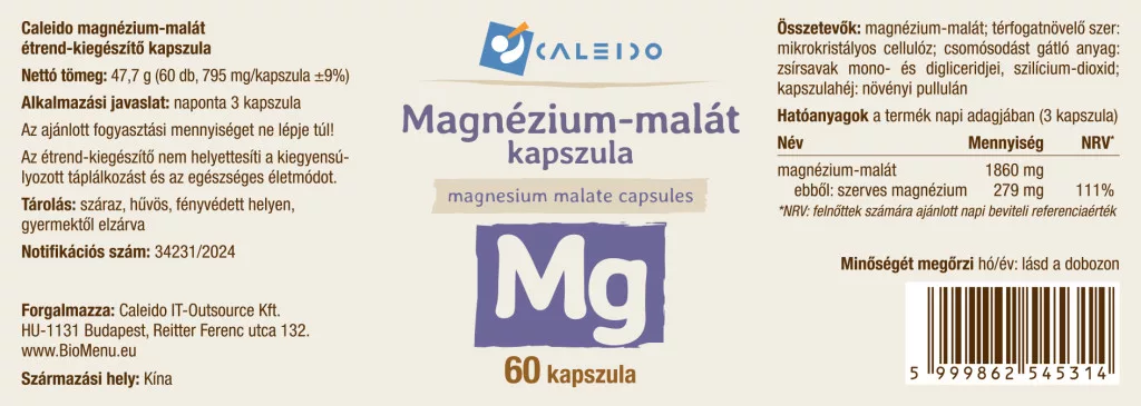 magnezijev malat 1860 mg, od tega organski magnezij 279 mg (NRV 111 %)