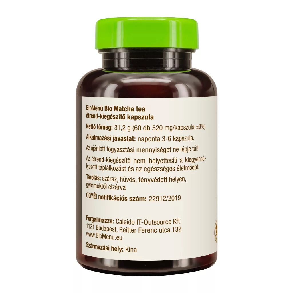 BioMenü BIO MATCHA TEA kapszula 60 db KÖZEL A LEJÁRAT DÁTUMÁHOZ